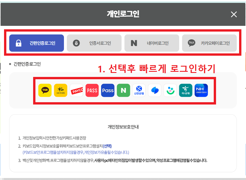 개인 공인인증 으로 빠르게 로그인하기