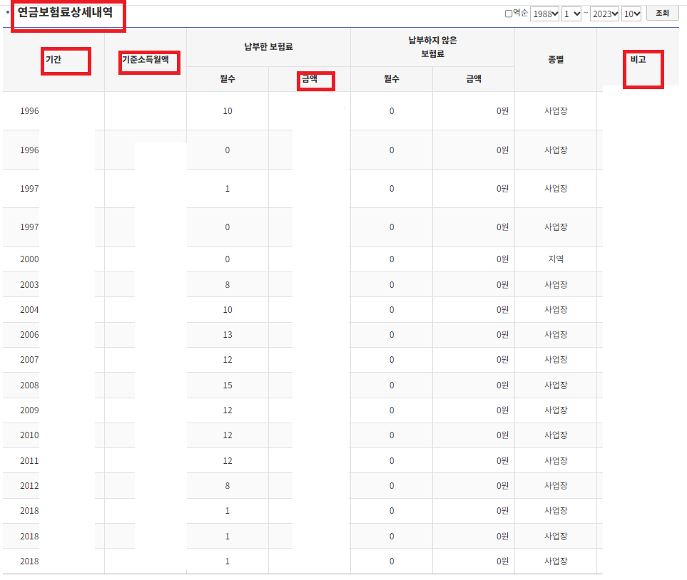 국민연금 가입내역 (국민연금 납입내역서 상세 조회가능)을 상세하게 조회 할수 있습니다