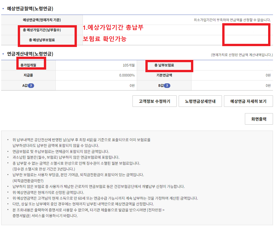 국민연금을 모두 납부하셨다면 예상 연금월액조회도 가능합니다