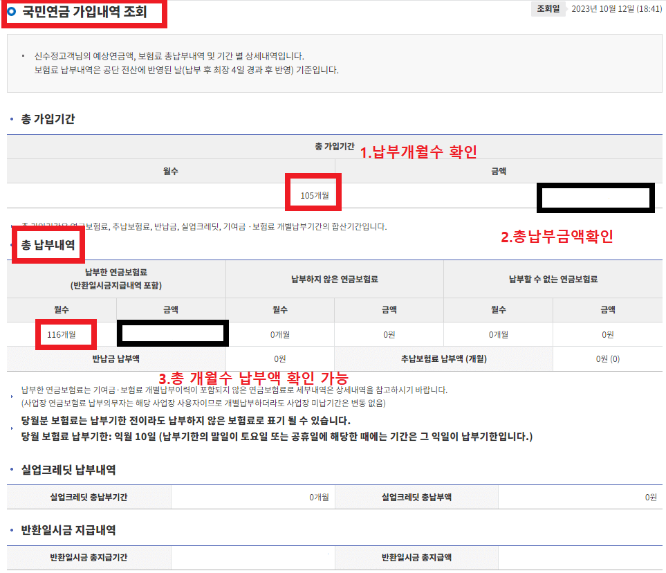 1. 국민연금 납부액 조회