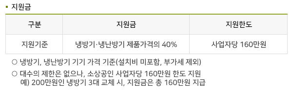 냉방기,냉난방기 제품가격의 40%로 사업자당 최대 160만원을 돌려받을 수 있습니다